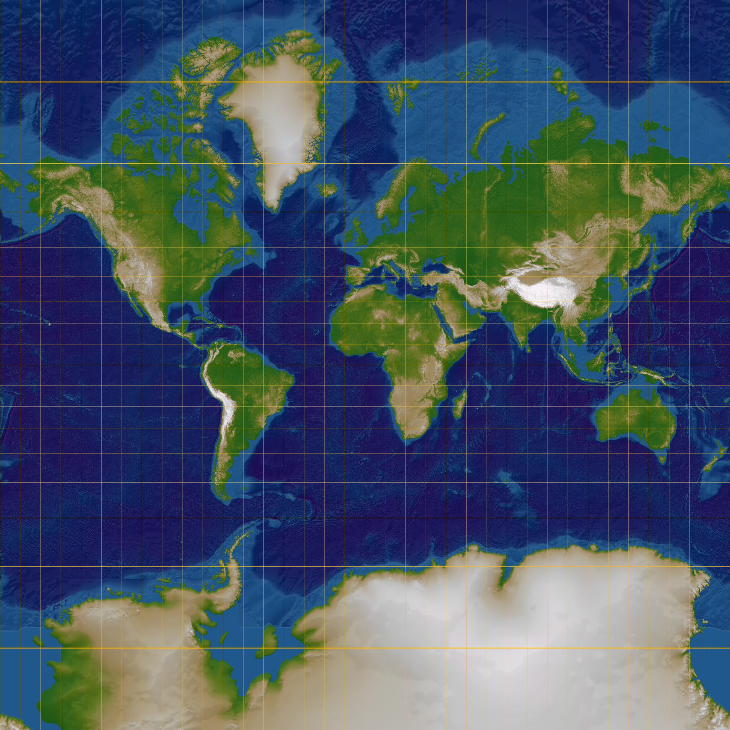 “File:Normal Mercator map 85deg.jpg” by RokerHRO is licensed under CC BY-SA 3.0